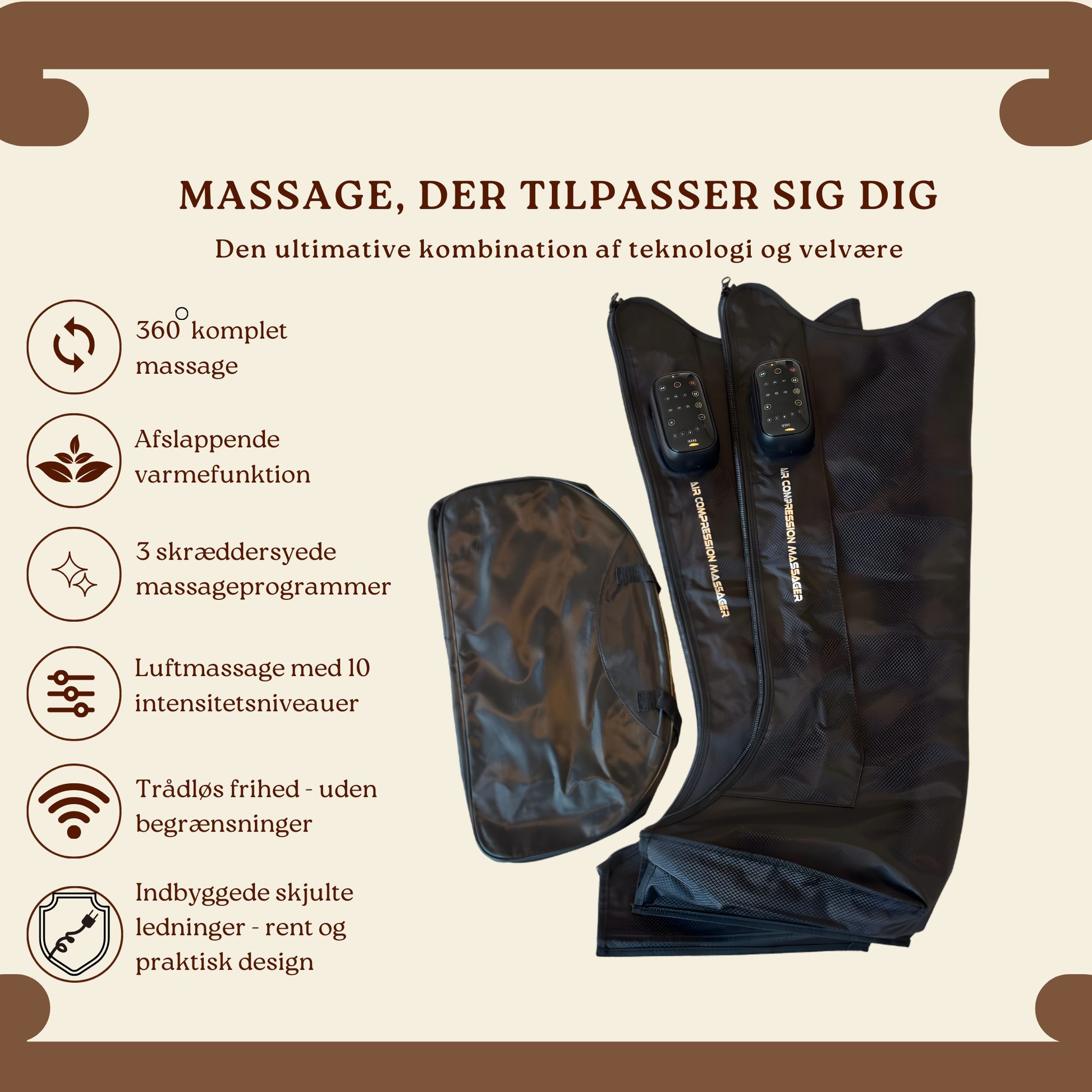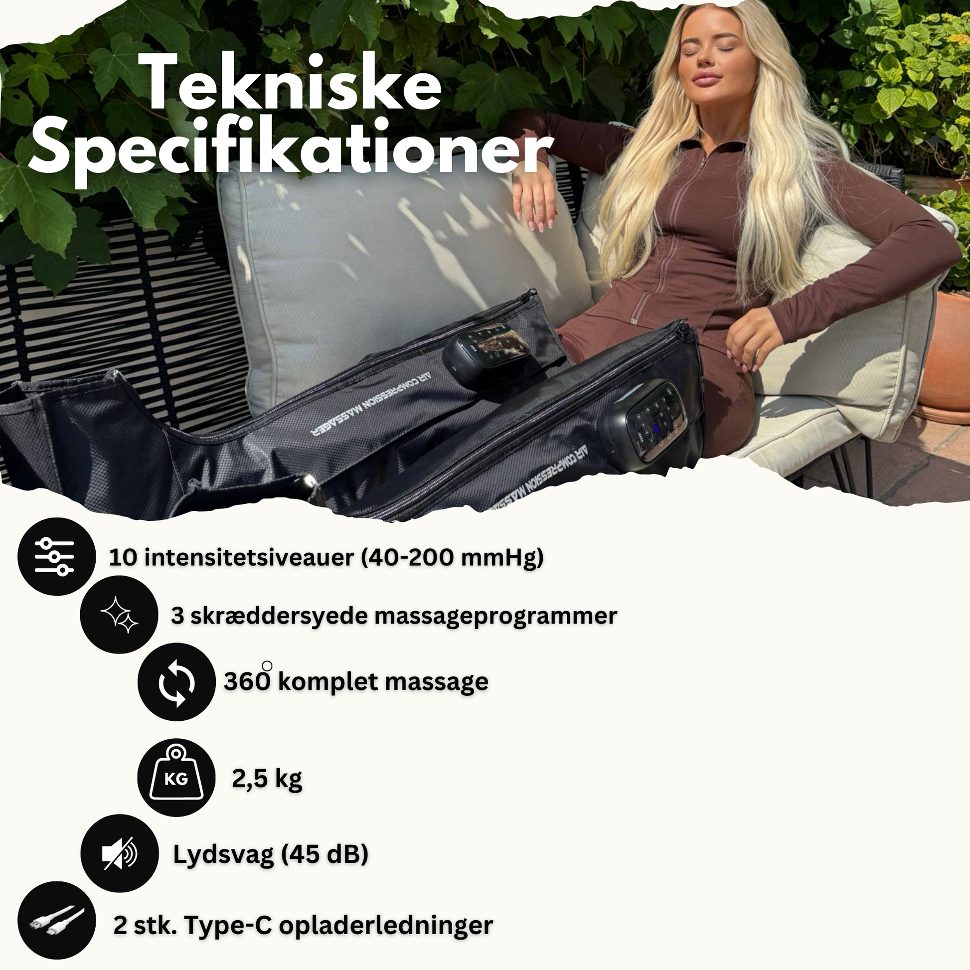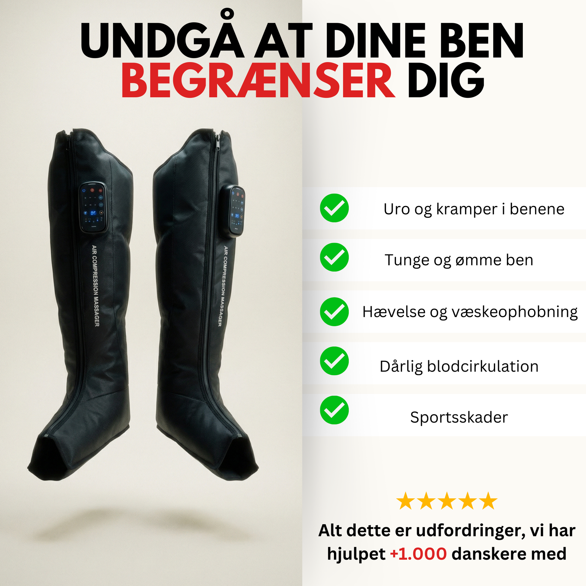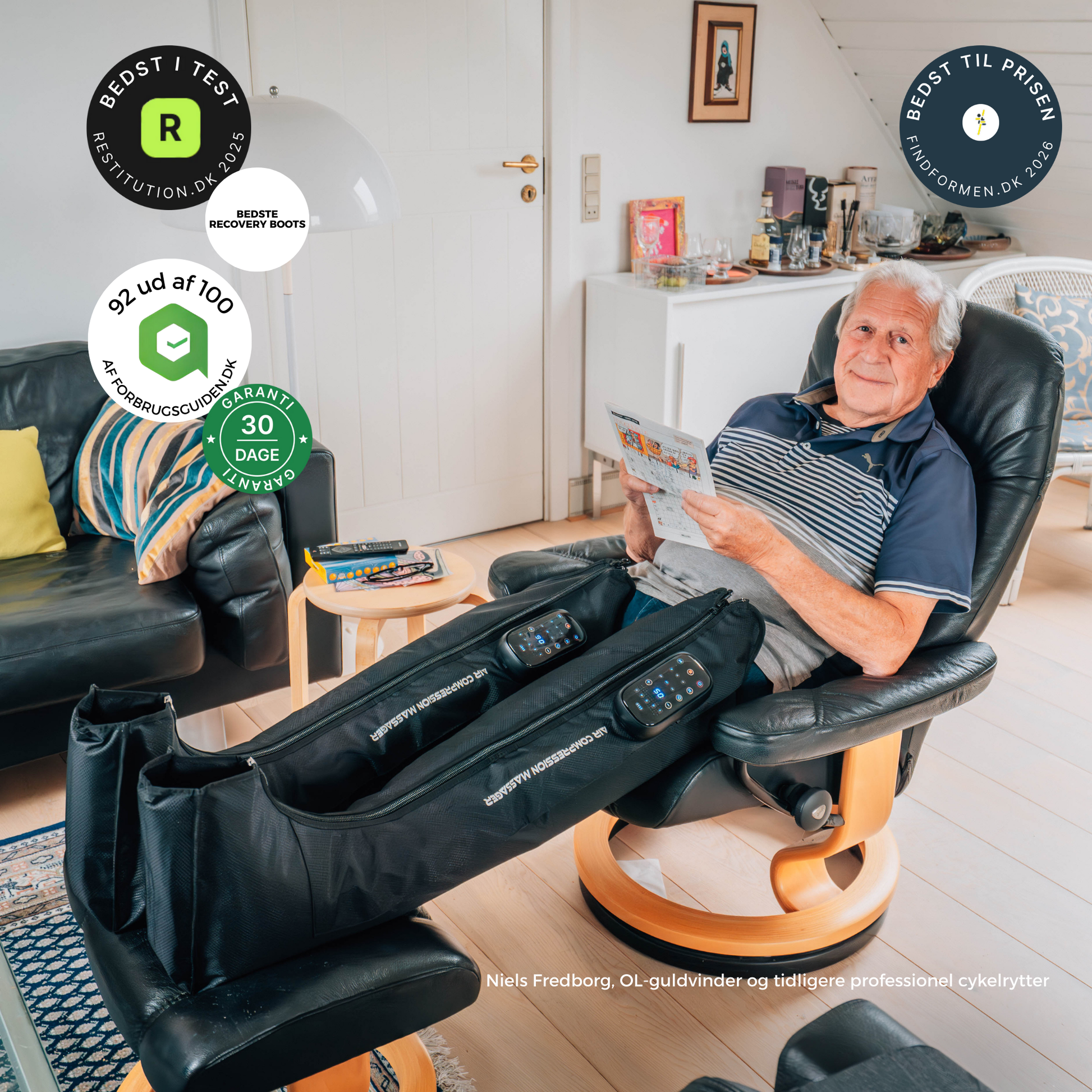 Luftkompressionen masserer musklerne og stimulerer lymfesystemet, hvilket forbedrer blodgennemstrømning og transport af næringsstoffer. Det betyder mindre ømhed, færre skader og hurtigere genopbygning.