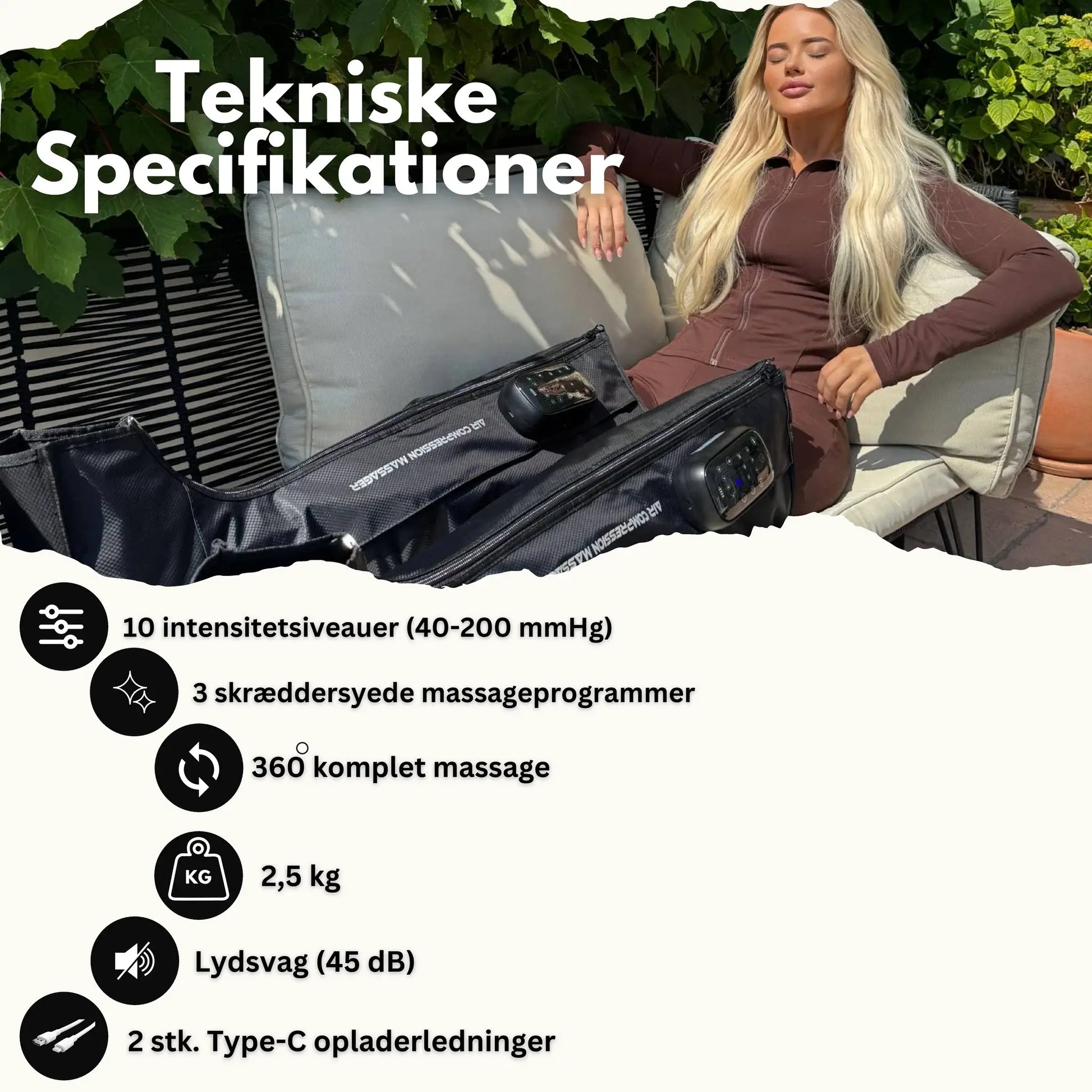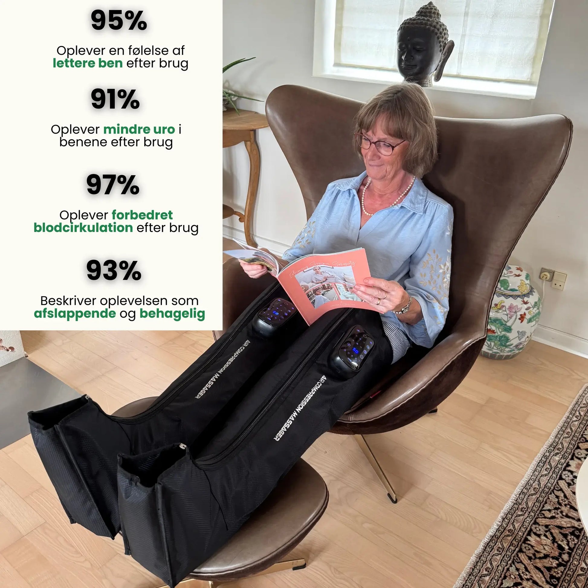 Vores Recovery Boots lindrer, forebygger og reducerer en lang række gener, smerter og cirkulationsproblemer – samtidig med at du får en afslappende, effektiv massage, der giver lettere ben i hverdagen.