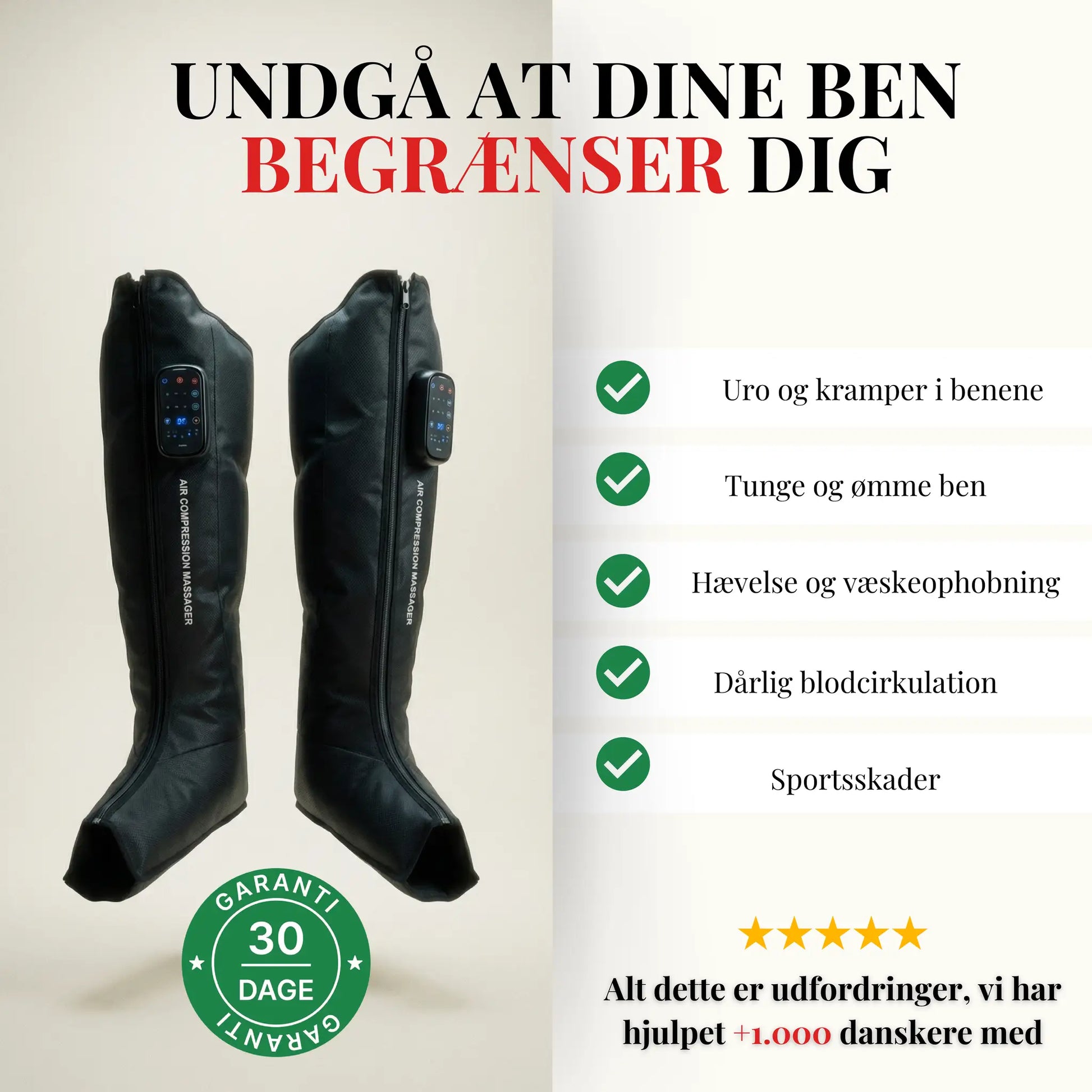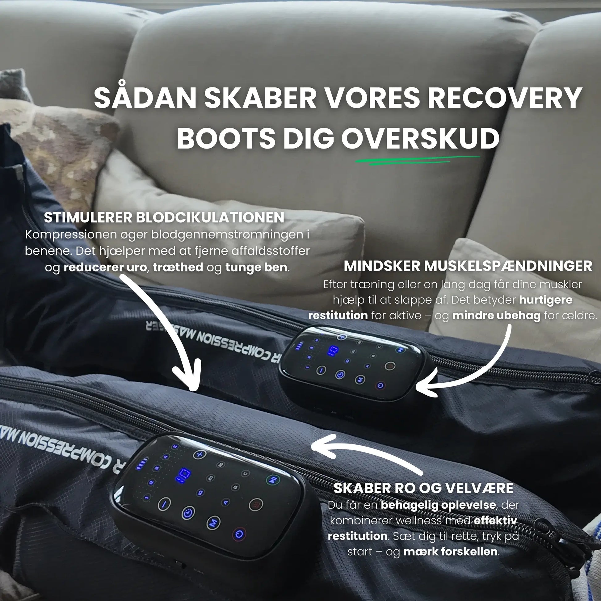 på vores Recovery Boots. Hvis du ikke er tilfreds, får du alle pengene refunderet - Læs mere her