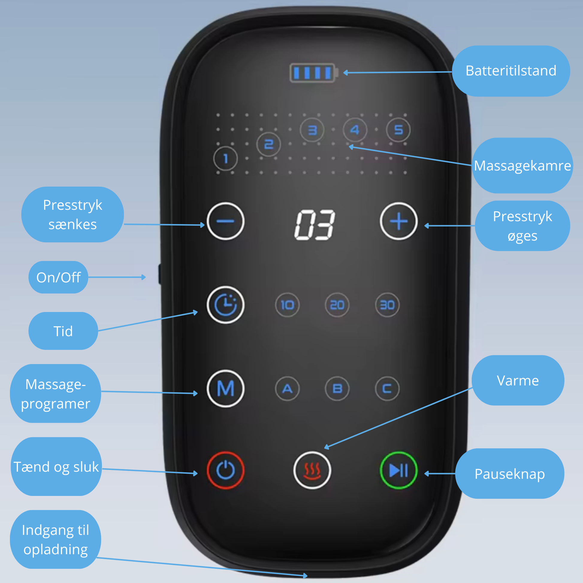 - Program B – Muskelrestitution: Giver en dyb og aktiv massage, perfekt efter træning eller kamp.
